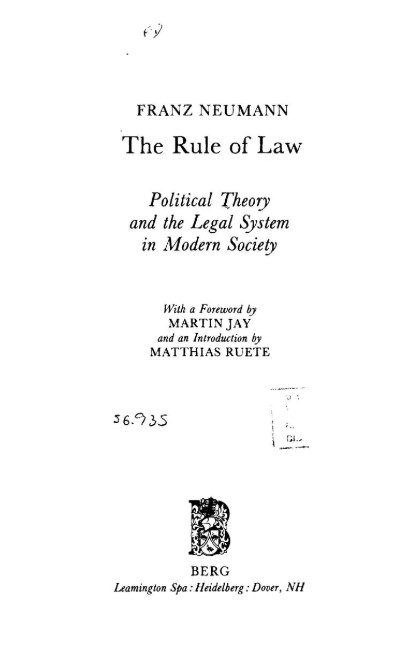[4] F. L. Neumann The Rule of Law: Political Theory and the Legal System in Modern Society, Oxford: Berg, 1986.